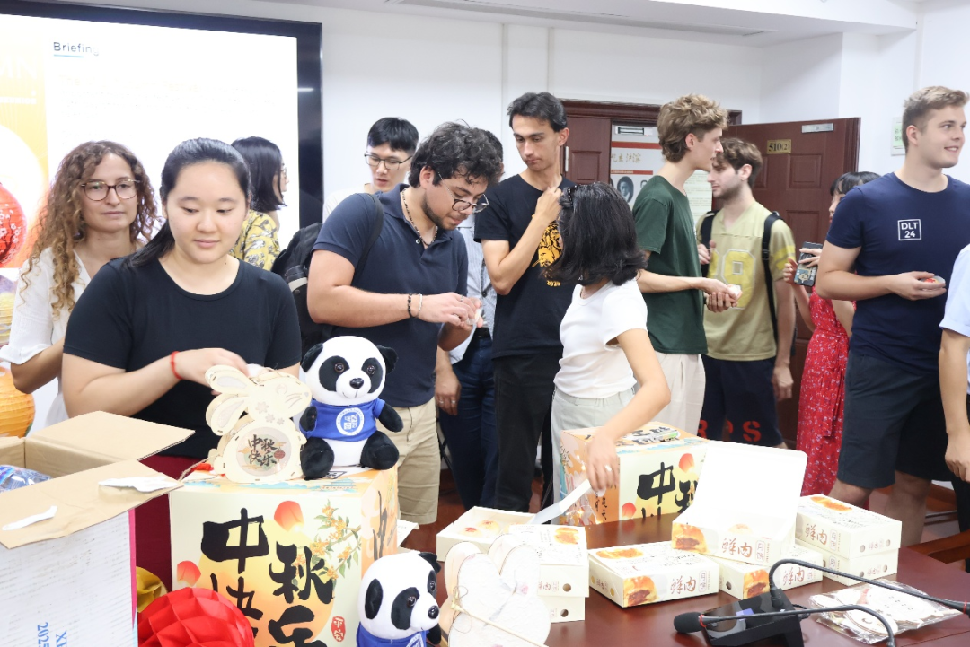 2025年9月26日,我院举办了2025年英文项目国际学生中秋文化交流会。副院长张平、英文授课项目主任余博闻、李海默、李珺、彭泽宇、袁千里以及国际办公室老师们,近40名学历留学生和非学历交流生共同参加了本次活动。